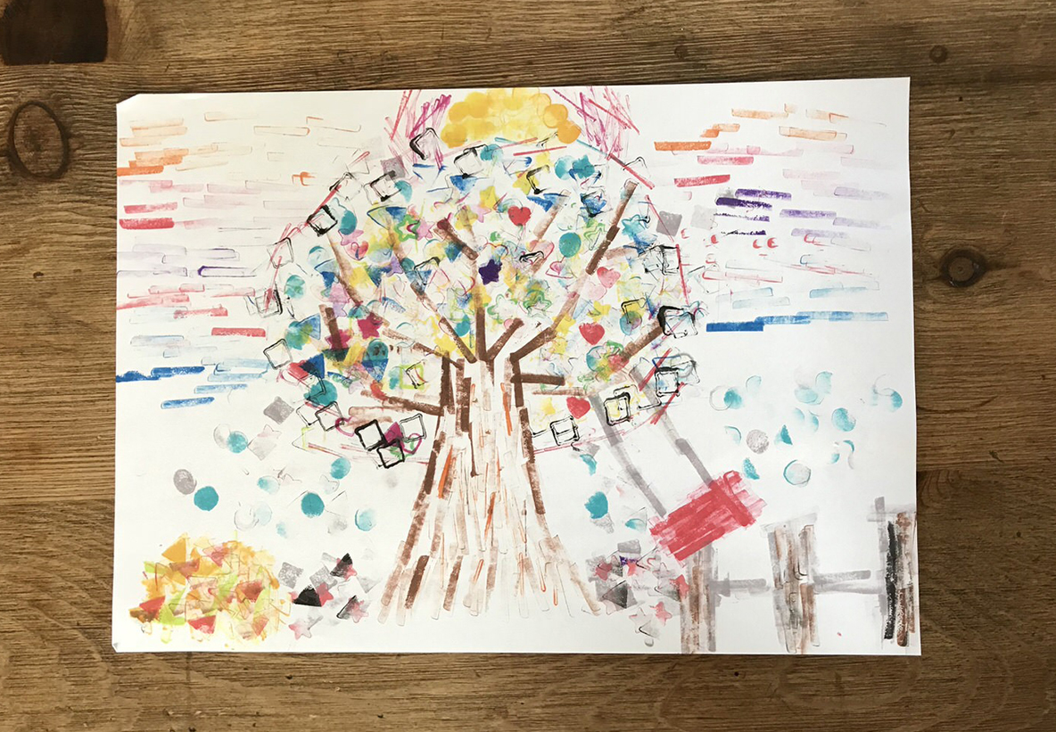 ○△□などのはんこで色々な物をスタンプで作っちゃおう!あそびの中からアイデアがあふれ出し、たくさんの色を使ってお家で楽しく創造しよう!